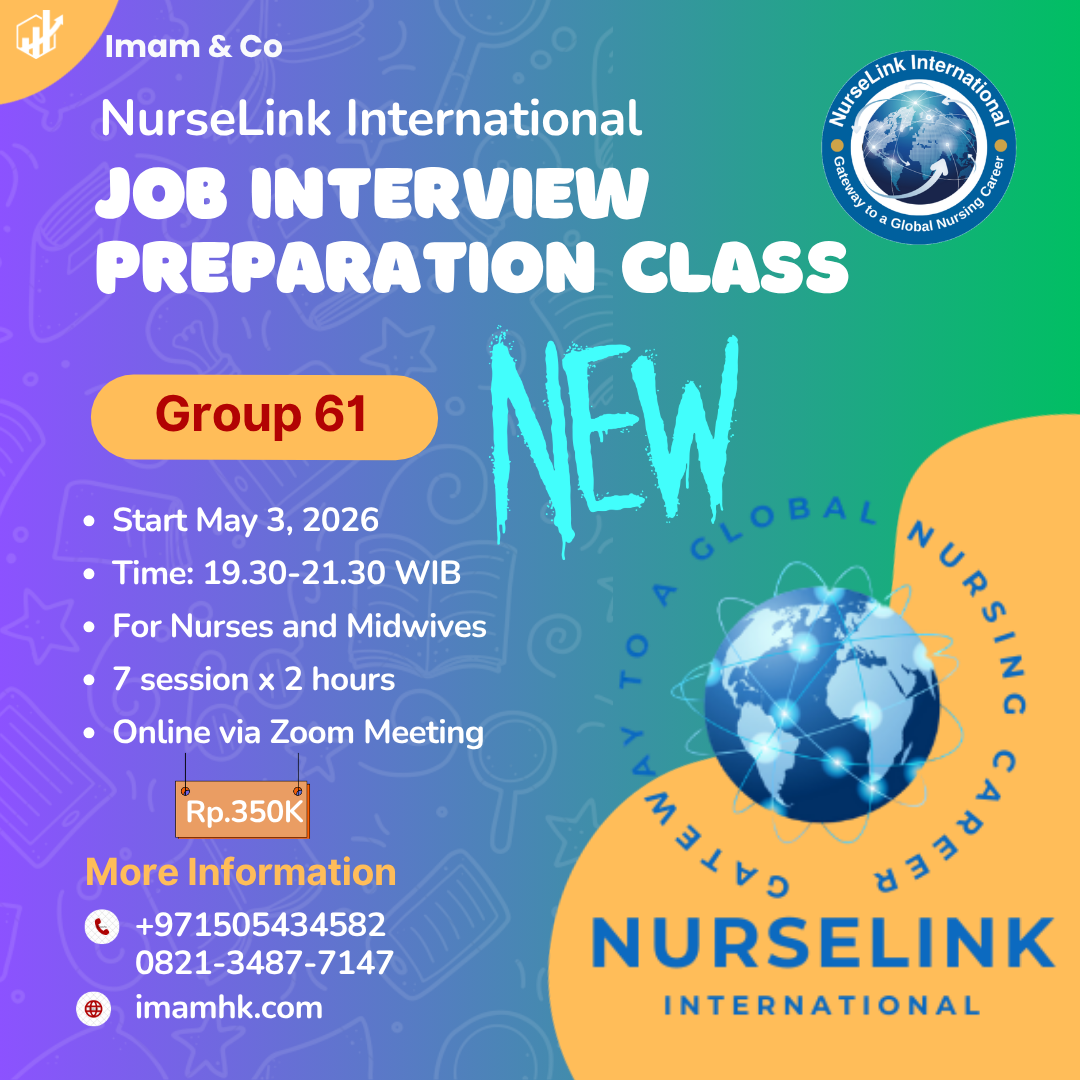 Nursing and Midwifery Job Interview Preparation Class diadakan setiap minggu oleh NURSELINK INTERNATIONAL company secara online dari Abu Dhabi United Arab Emirates. Tujuan:Mempersiapkan perawat dengan pengetahuan yang dibutuhkan untuk menghadapi…